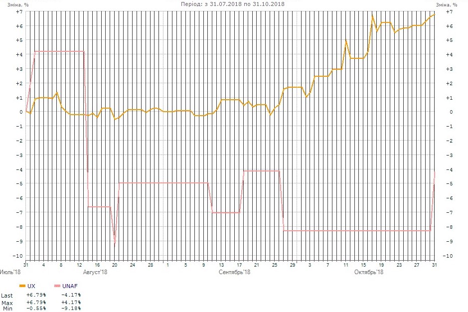 Я передбачаю поступове подальше зростання акцій ПАТ «Укрнафта» у найближчий місяць на порядок 5-6 гривень від курсу на станом на 31.10.2018