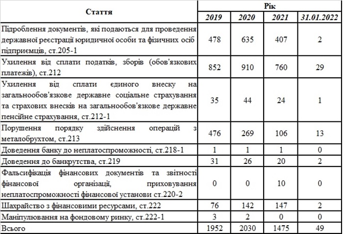 Аналіз злочинів на підприємствах в Україні(2019-січень 2022рр)